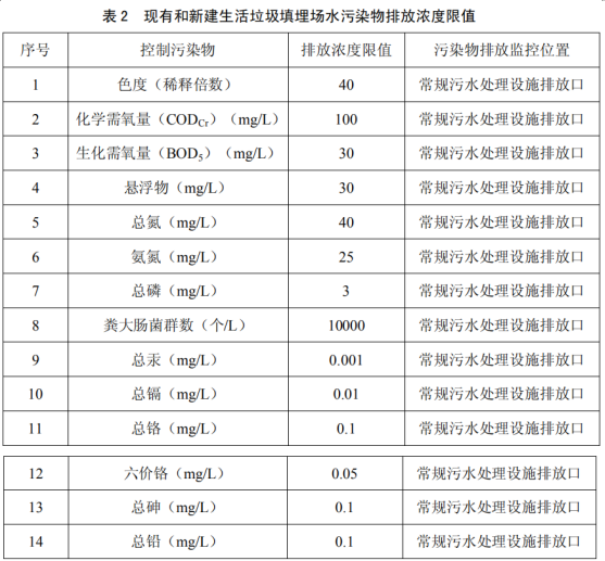 2、 現(xiàn)有和新建生活垃圾填埋場(chǎng)自 2008 年 7 月 1 日起執(zhí)行表 2 規(guī)定的水污染物排放濃度限 值。